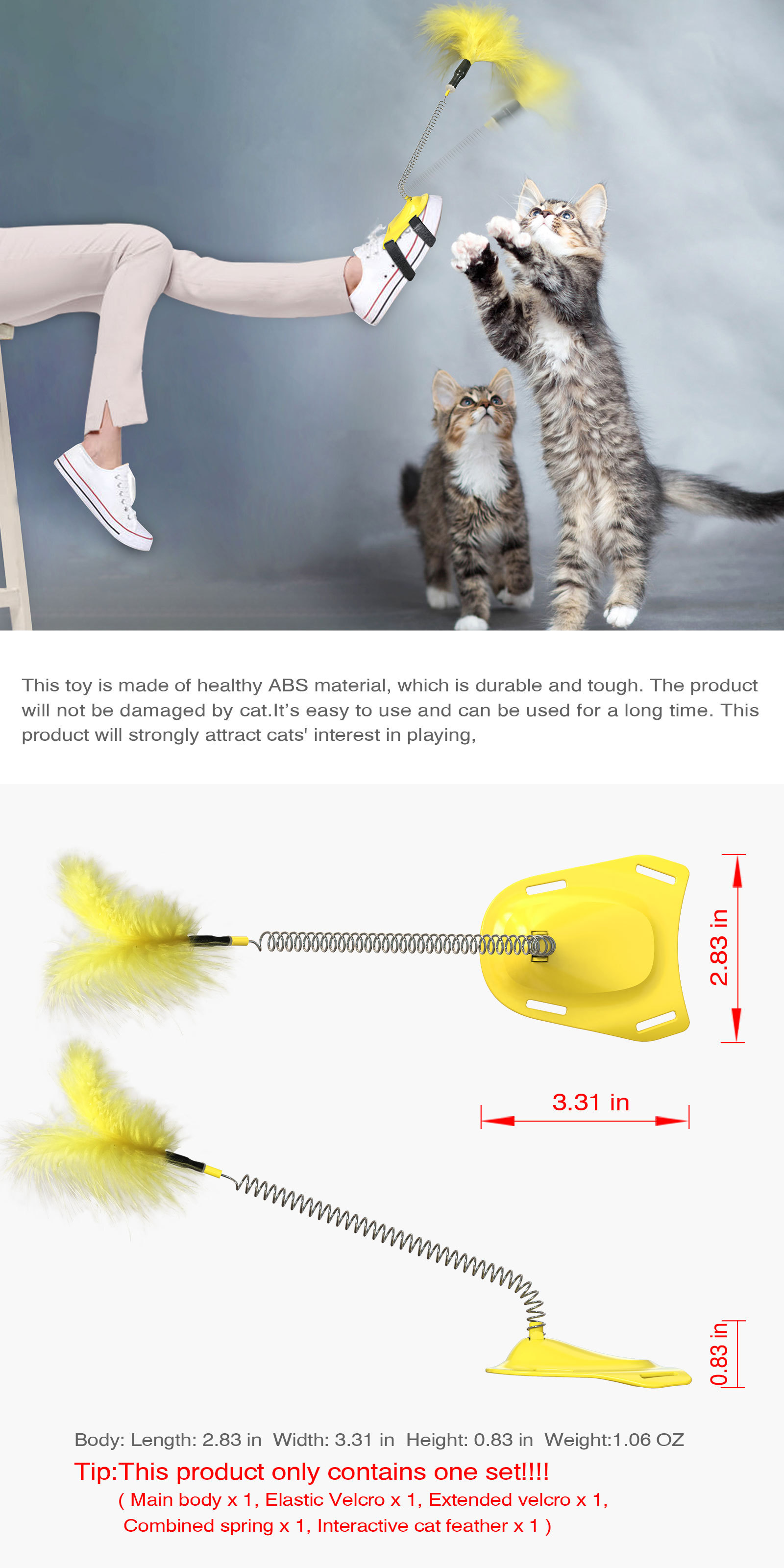 2 in 1: Comes with a feather toy trailer with a removable top or you can take it off to amuse your cat, stimulate your cat's senses and hunting instincts, it's a cat's eye catcher. This interactive cat toy is perfect for your cat to play with.