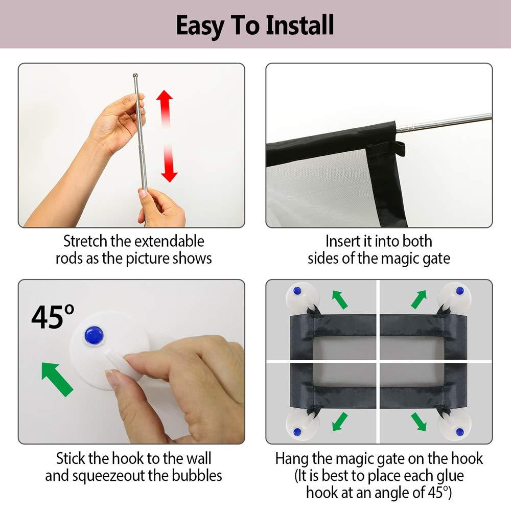 Ideal For Scenes: Punch-free safety gate guardrail entrance isolation design, easy installation, simple operation, can be placed at the entrance of the kitchen, stairs, bedroom, bathroom, etc.