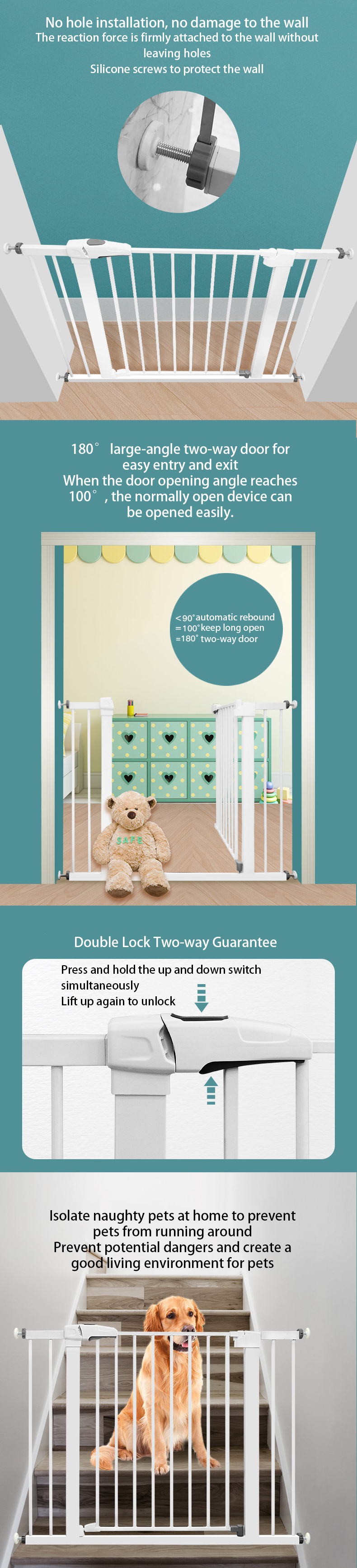 Ideal For Scenes: Punch-free safety gate guardrail entrance isolation gate fence two-way door design, easy to install, simple to operate, can be placed at the entrance of the kitchen, stairs, bedroom, bathroom, etc.
