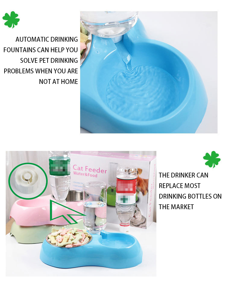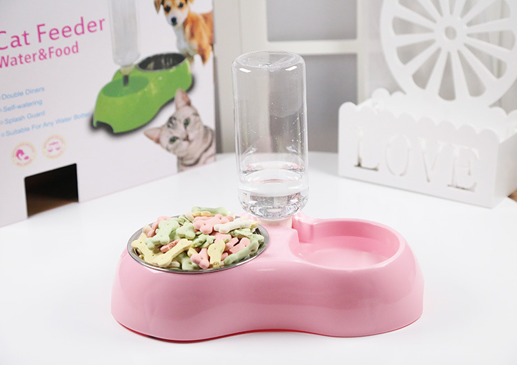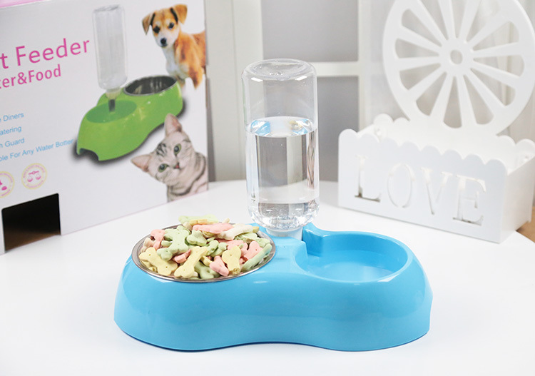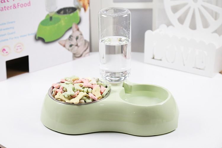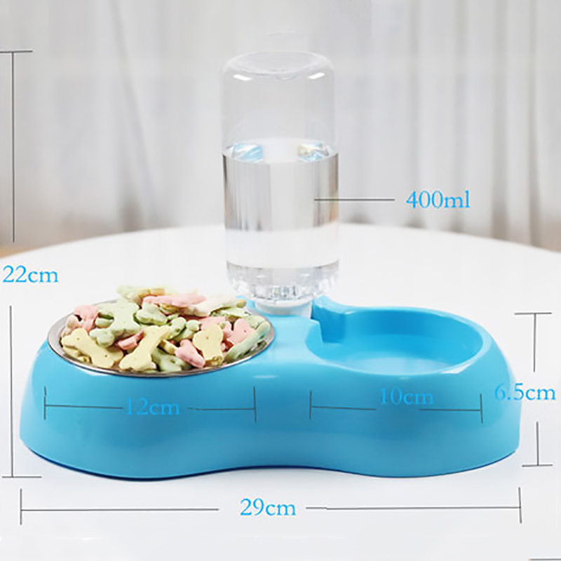 Double Bowls with Automatic Water Bottle: 2 in 1 feeder bowl design. One stainless steel bowl for food, another bowl with automatic water bottle for drinking. It will refill the water into the water tank automatically and keep the water cleaning whether you at home or not.