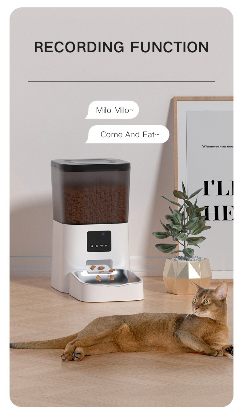 Pre-meal Voice Reminder: Press And Hold The Voice Recording Button On The Pet Feeder Panel To Create Your Own 10s Personalized Voice Recording That Calls Your Pets When Food Is Dispensed, Letting Them Know When It's Time To Eat.