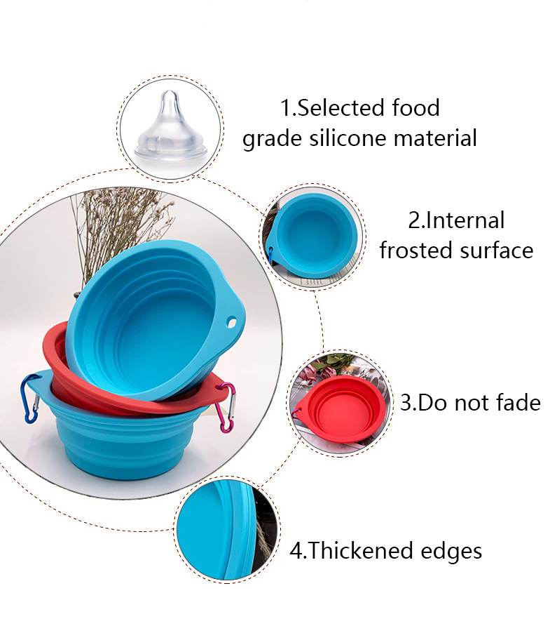 Portable Cat Dog Travel Silicone Bowl With Carabiner
