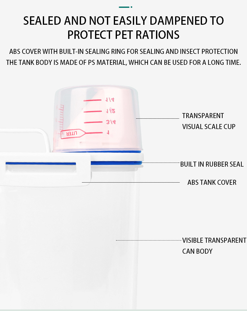 Wide Application: This dog food container is made of food grade ABS, it is safe to use, it can be used to store not only dog or cat food, but also rice, nuts, grains, beans or whatever you like, transparent The body makes food visible at a glance.