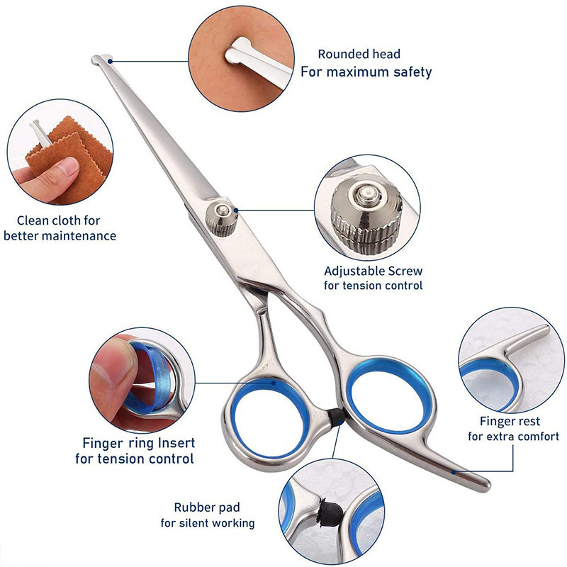 Round Tips For Safety: No Worry About Accidentally Poking Pets, Especially When Grooming Sensitive Areas(such As Face, Ears, Eyes, Nose, Paws), Because Our Dog Grooming Shears Have Rounded End Tips.