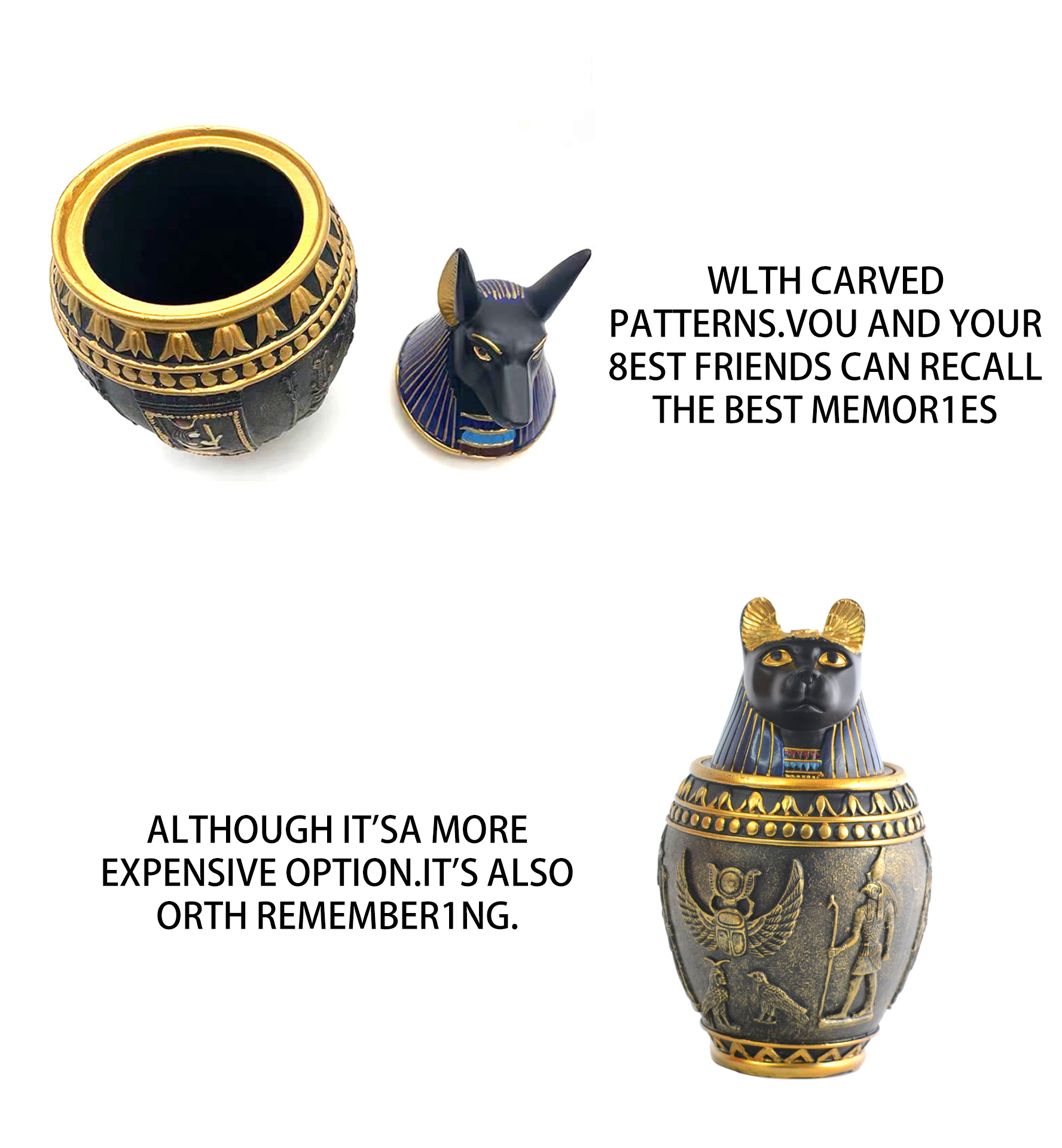 Not boring, not ugly, not your average urn! This is an urn that you can proudly display anywhere in the house and make it look great. Your pet deserves a resting place as palatial as this Egyptian god's urn!