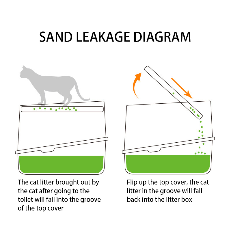 Top Cover: Small holes in the top cover help remove cat litter particles from cat's paws and make the floor cat litter free.