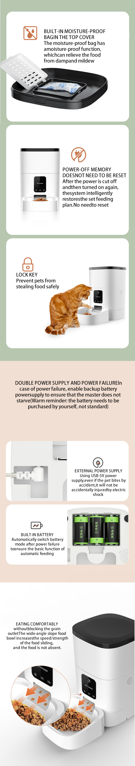 Never Missing A Meal: The Feeder Is Only Suitable For 2-12mm Dry Pet Food. The Timetable For Providing Pets Is Up To 10 Meals, With 1-10 Servings Per Meal, And Each Serving Is About 8-10 Grams.if The Food Is Insufficient, Our App Will Remind You On It.